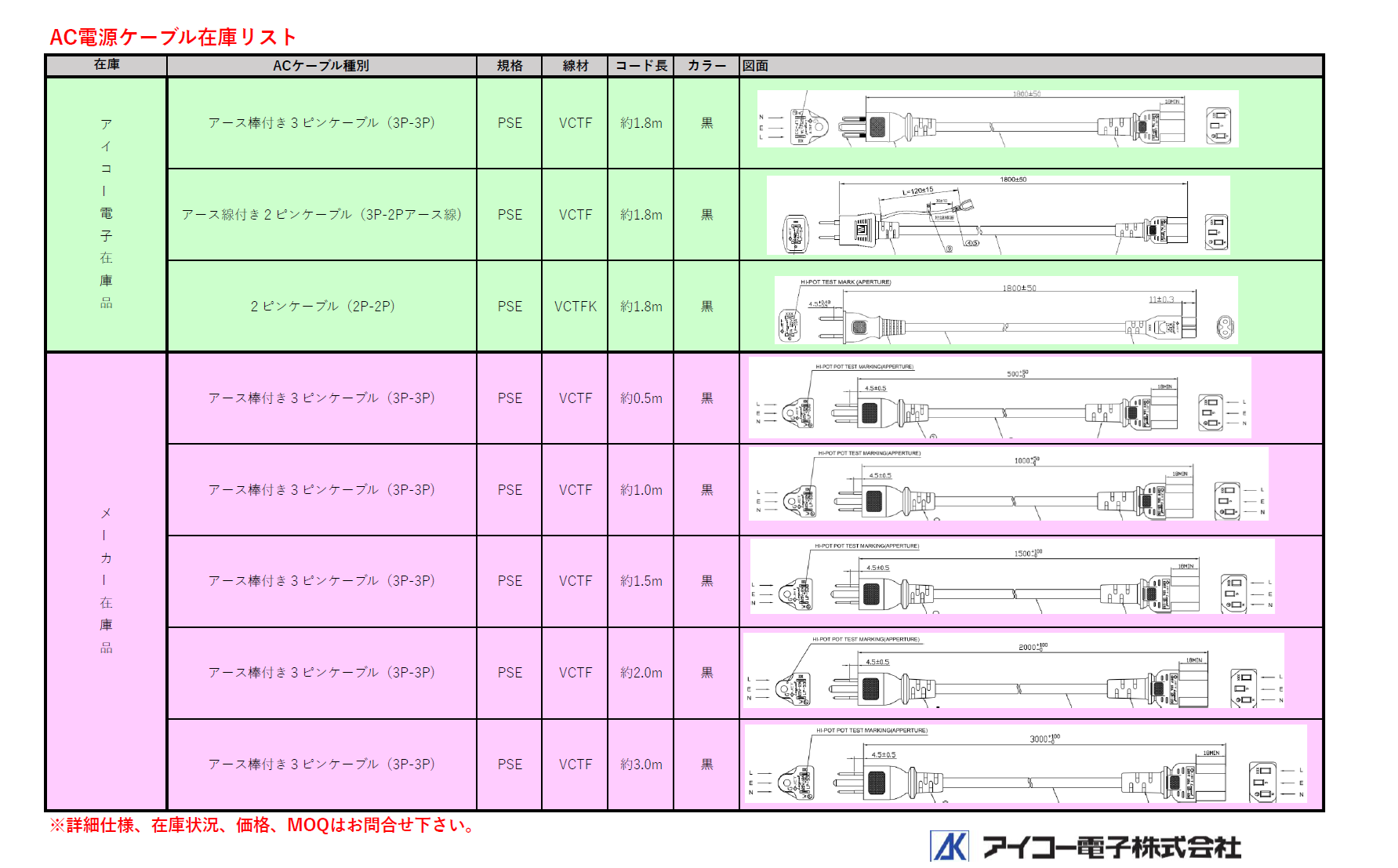 ※詳細仕様、在庫状況、価格、MOQはお問合せ下さい。